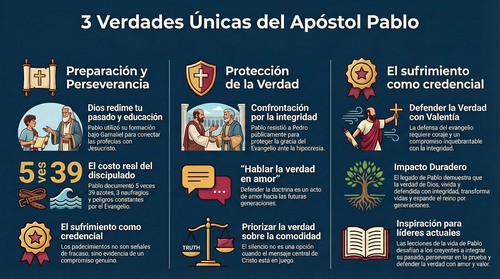 La vida del apóstol Pablo desafía muchas ideas comunes sobre el liderazgo cristiano. Su historia demuestra que Dios no busca personas perfectas, sino personas dispuestas. Tres verdades de su vida revelan principios que pueden transformar la manera de ver el llamado de Dios, el sufrimiento por Cristo y la defensa de la verdad.
